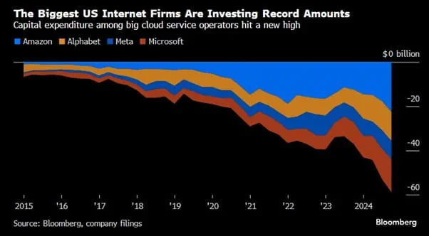 科技四巨头三季度资本支出? 来源:Bloomberg