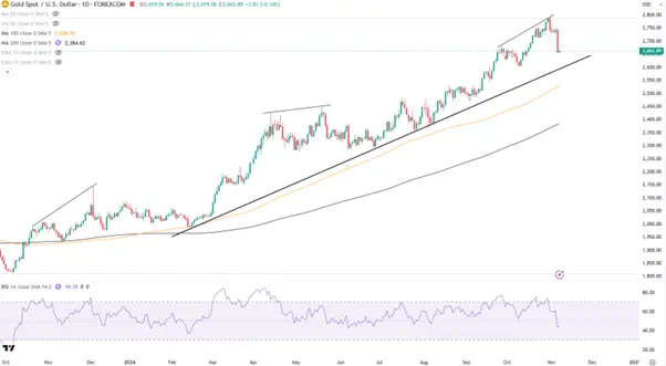 美国大选这一今年最大的悬念揭晓后,黄金当日跳水3%,市场显然偏向认为特朗普会致力于结束地区冲突降低地缘风险。值得提醒的是,在2016年11月8日特朗普胜选后,黄金经历了长达一个多月累计11%的跌幅。