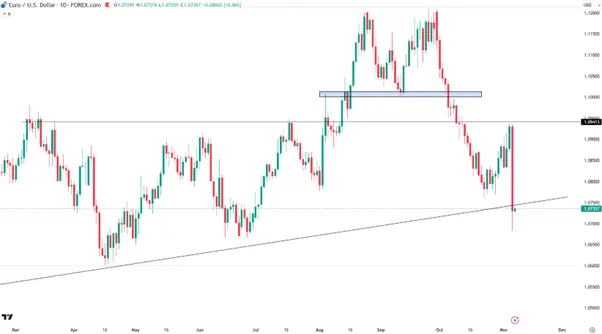 在特朗普胜选之后,利率市场立即下调了对于明年的降息幅度预期,同时12月维持利率不变的概率升至了31%。不论是从近期整体乐观的经济数据来看或者从预防通胀回归的角度出发,美联储都将对未来的降息更为谨慎,这是美元的利好。我们将在本周五美联储的会议声明和新闻发布会中获得最新的线索。